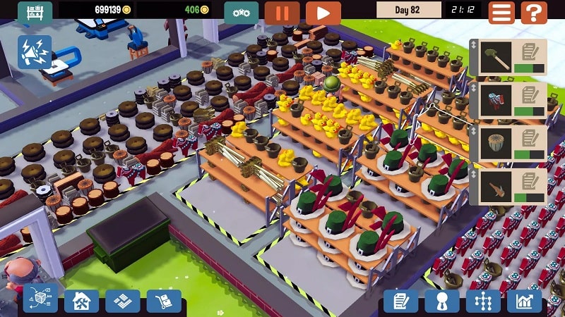 Little Big Workshop Mod is a factory management simulation game where players build and operate a manufacturing workshop. The core gameplay involves hiring workers, purchasing and arranging machinery, fulfilling customer orders, and managing finances to grow from a small operation into a large enterprise. The game targets players interested in detailed production logistics and resource optimization without the pressure of real-time strategy elements.