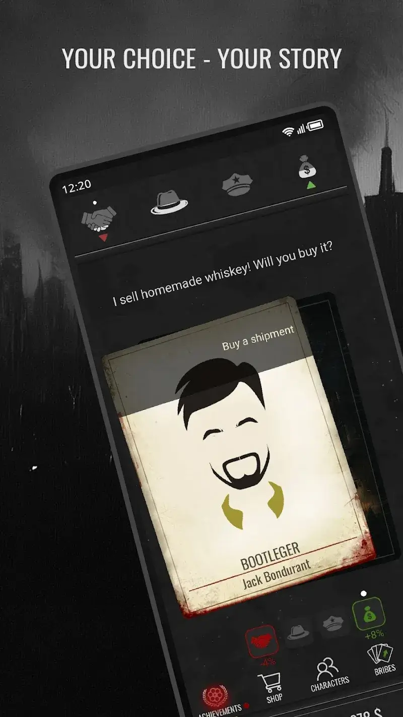 Mafia Reigns Mod is a narrative-driven card game simulating the power dynamics of running a criminal organization. Players make strategic choices by swiping left or right on cards, each decision impacting their family's money, power, influence, and police attention. The mod APK version is for users who wish to bypass the economic constraints of the official release to explore narrative branches without resource management.
