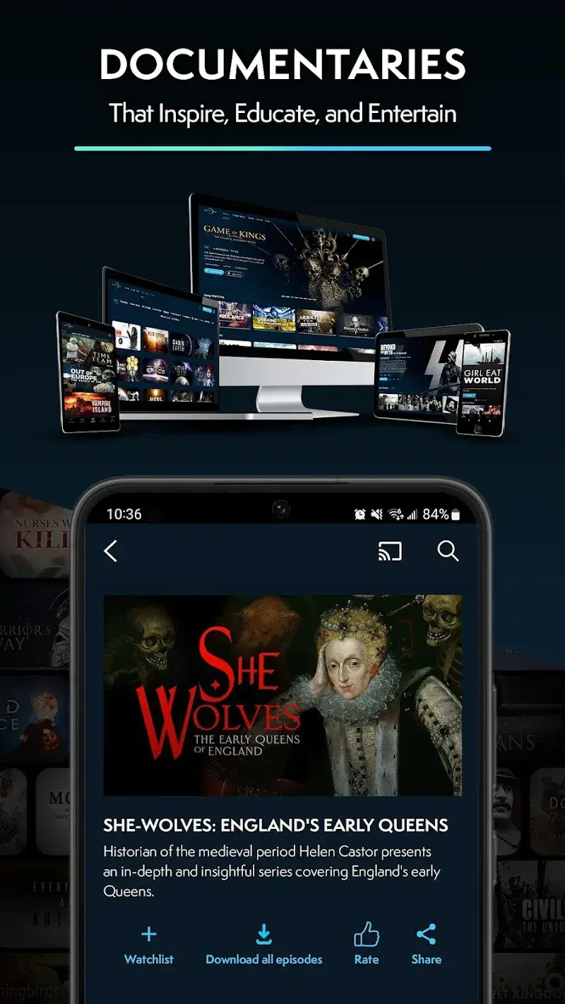 MagellanTV Documentaries Mod is a streaming application focused exclusively on documentary films and series. It serves users seeking educational and factual content across history, science, nature, and culture. The app aggregates a curated library of over 3000 titles, with new content added weekly, and is designed for on-demand viewing on mobile and connected TV platforms.