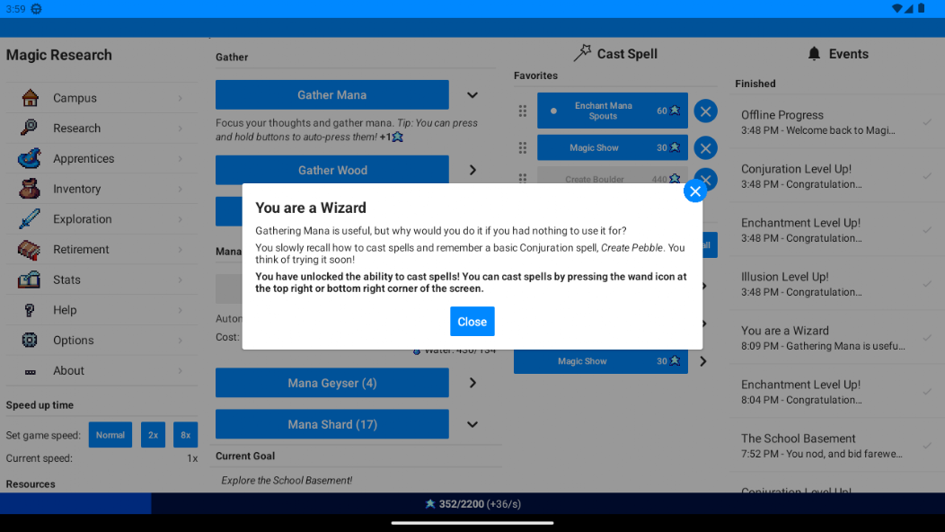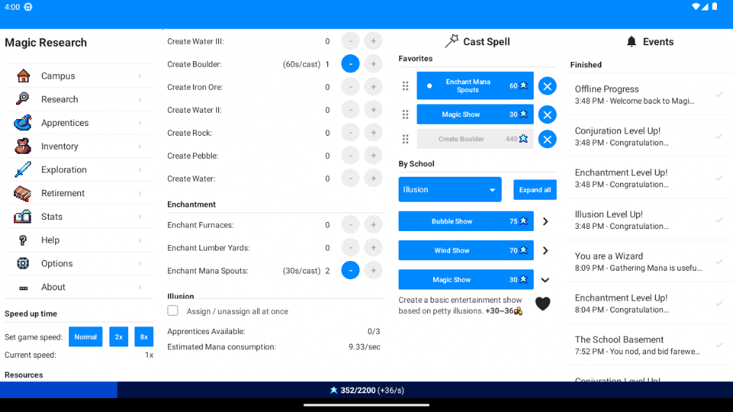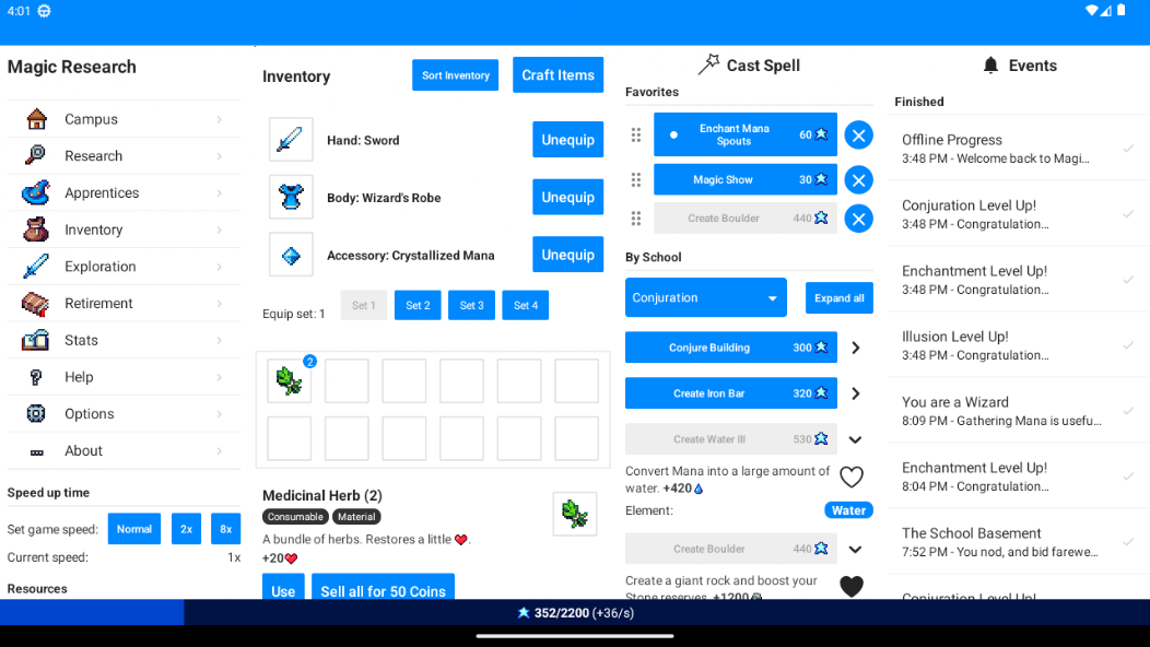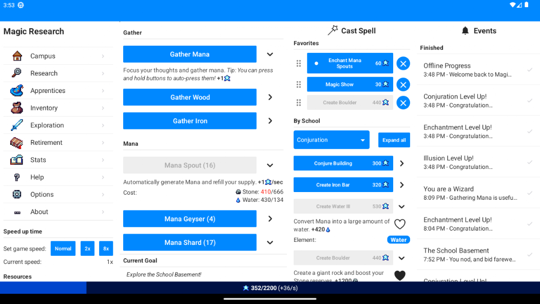 - All premium spells and research options are unlocked from the start of the game. This includes spells normally gated behind progression or in-app purchases.