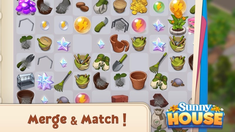 Merge Manor Sunny House Mod is a puzzle-driven renovation game where players combine objects to restore and decorate a dilapidated mansion. The core loop involves merging everyday items like flower pots, tools, and stones to create higher-value decorations and structures, which are then used to complete tasks and unlock new areas of the estate. It targets players who enjoy incremental progression, home design, and casual puzzle mechanics without time pressure.