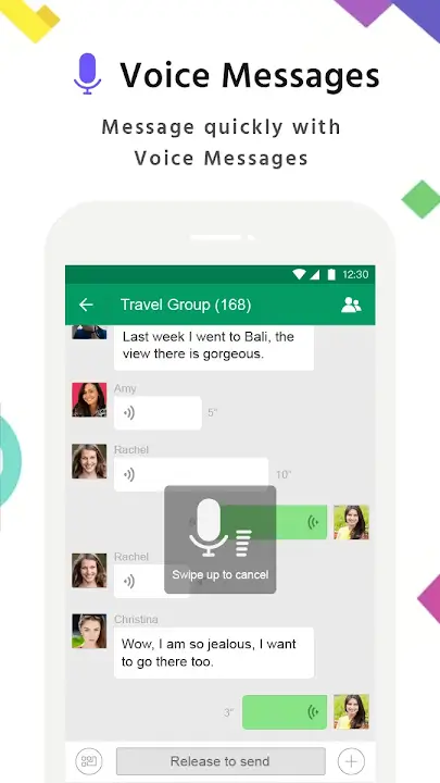 Share the images, videos, audios, locations, stickers, and so many things to the private or group users for your ease. You can interact and follow people nearby you or from any part of the world. Share your content with the world like videos, audio, recordings, images and more to all the people or individuals in person. Collection of emojis, stickers and other animation for sharing, creating groups and adding people on the random or same purpose.