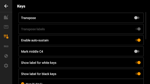 Switching between these sounds is fast and smooth. This is very useful for those who want to be creative with many musical styles without having to switch to another app. Furthermore, Mini Piano Pro also allows you to adjust the fundamental frequency (Hz) and change the pitch (transpose) to suit your vocals or arrangements.