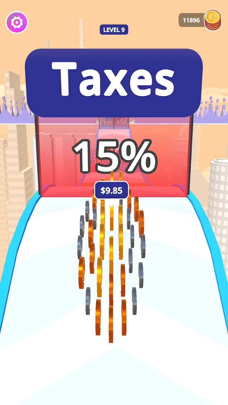 Money Rush Mod is an arcade-style game where players control a rolling coin symbol to collect currency and achieve high scores. The core loop involves navigating forward-moving coins through simple environments to accumulate wealth. The game targets players seeking a casual, incremental progression experience without complex character mechanics.
