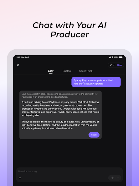 Mureka AI Mod is an Android application that uses artificial intelligence to generate original music tracks based on user prompts. It is designed for musicians, content creators, and hobbyists seeking a tool for rapid music ideation and production. The app functions as a text-to-music generator, converting descriptive inputs into instrumental compositions.