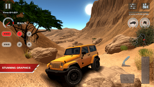 OffRoad Drive Desert Mod es un simulador de conducción todoterreno que pone al jugador al volante de vehículos 4x4 en entornos desérticos. El juego está diseñado para usuarios que buscan una experiencia de conducción técnica, enfocándose en la física de vehículos, la gestión del terreno y la superación de obstáculos naturales. La progresión oficial se basa en completar niveles para desbloquear nuevos coches y piezas de tuning.