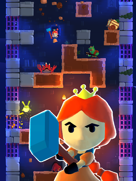 Once Upon a Tower (MOD, Unlocked) - vertical action with elements of the platformer and puzzle. The plot of the game is built around a fairytale story, the princess is imprisoned in a high tower and waits for her to be rescued by a knight in shining armor, in whose role you will perform. Each level is a vertical location consisting of intricate blocks of blocks, on which there are also various enemies guarding the peace of the princess, you also need to get to the girl and release her.
