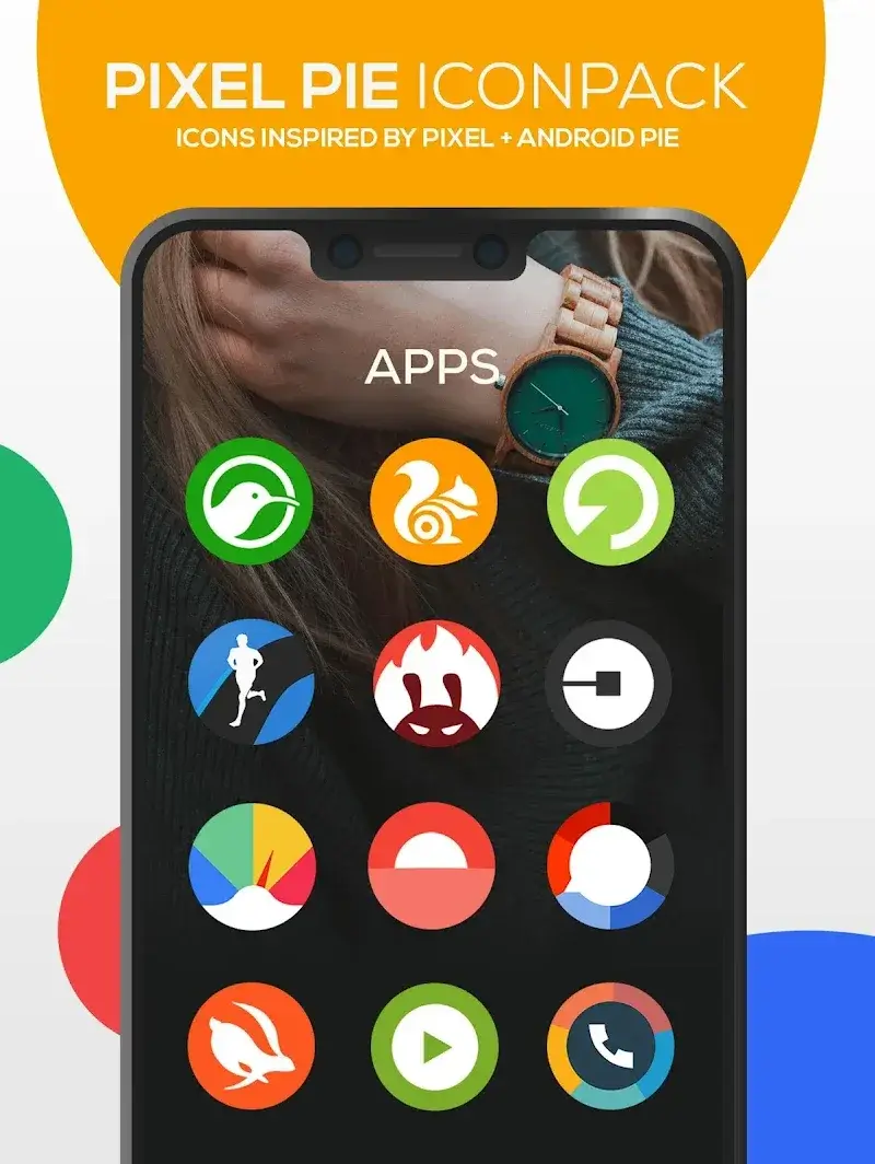 Pixels Icon Pack Mod is a personalization tool that replaces system and app icons with a cohesive pixel-art and flat material design aesthetic. It is designed for users of third-party Android launchers like Nova Launcher who seek a uniform, stylized home screen interface. The app functions as a container for over 5,200 custom icon assets and wallpapers, applying them through the launcher's theme engine.