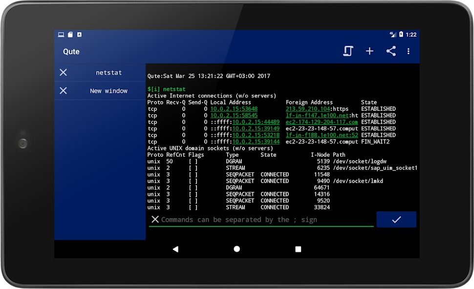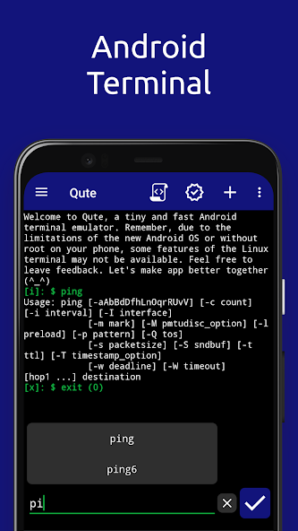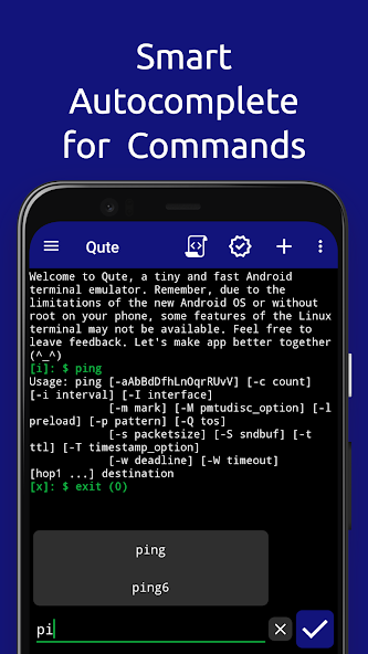 Qute Terminal emulator Mod is a local command-line interface for Android devices. It provides a terminal environment with support for common Linux/Unix commands, bash scripting, and file management tools like nano and vim. The app is designed for developers, system administrators, and power users who need to perform command-line operations directly on their Android device without requiring a remote SSH connection.