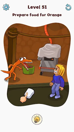 Typically at level 2, your task is to save the main character from the pursuit of Blue Monster. But in level 28, you will have to help Blue Monster find the innocent guy by erasing the styrofoam box on the screen. It is these somewhat different requirements that will contribute to making Blue Monster attractive to players throughout the experience.