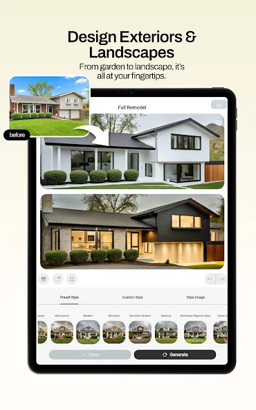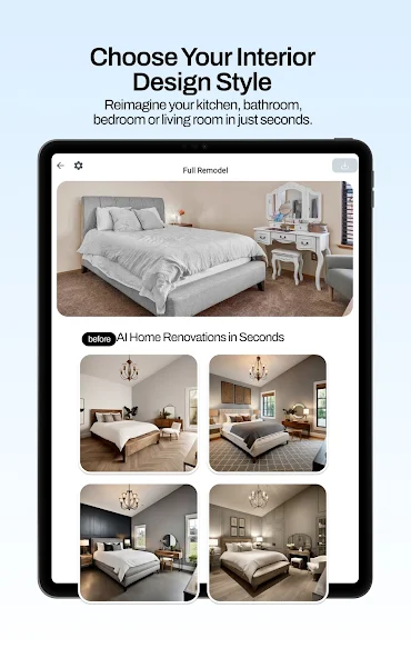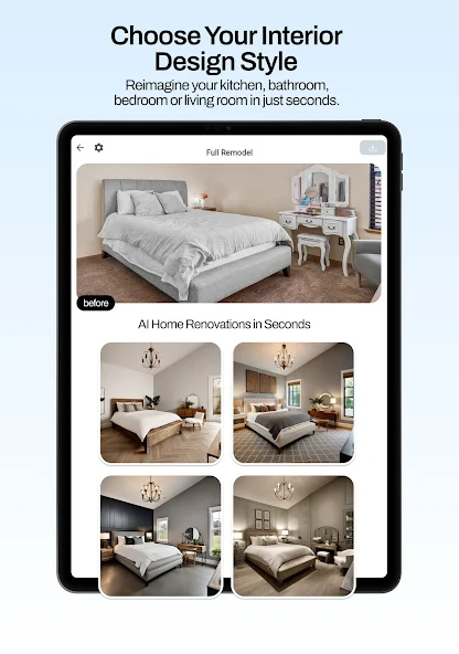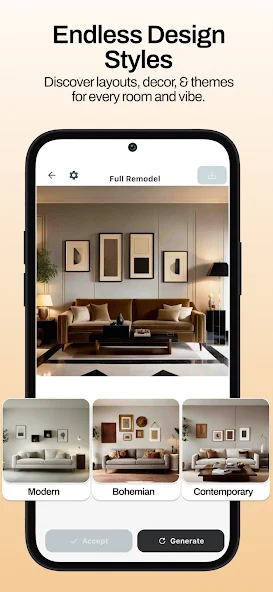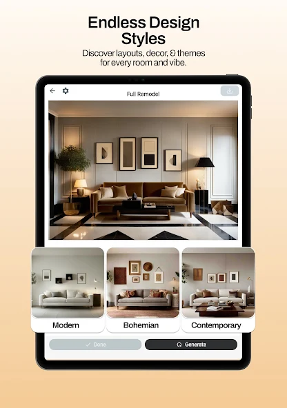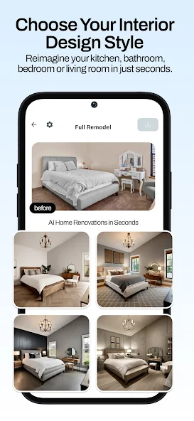 Remodel AI Mod es una aplicación de herramientas de diseño asistido por inteligencia artificial para Android. Su función principal es permitir a usuarios visualizar y planificar remodelaciones de interiores y exteriores del hogar mediante el procesamiento de fotografías existentes. La aplicación está dirigida a propietarios, inquilinos y aficionados al diseño que buscan experimentar con cambios estéticos y de distribución antes de comprometerse a compras o trabajos físicos. Opera dentro de la categoría de herramientas de productividad visual.