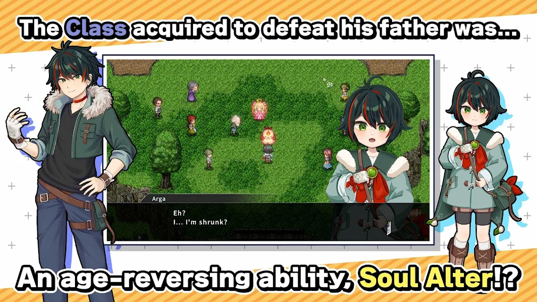 RPG Alter Age - immerse yourself in an unforgettable adventure with this RPG game. Arga, our main hero, has learned to be both an adult and a child, switching between these states. As you gather your team, you will encounter numerous trials on your hero's grand journey. Swap your friends in the battle of good versus evil between the two age states, alternating between attacks and defense! Use a wide range of elements and builds, including various equipment and skills, to manage battles.