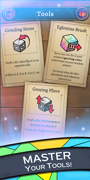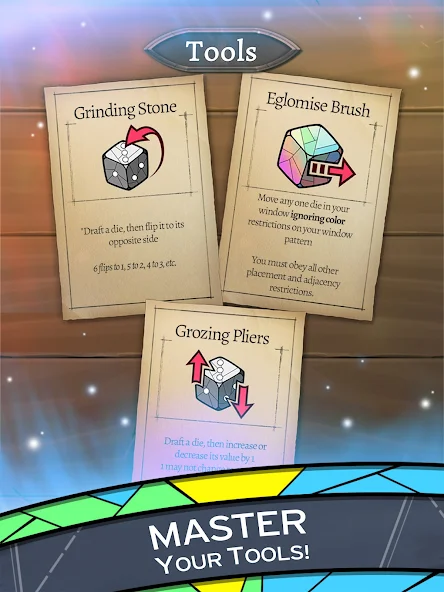 Sagrada Mod is a digital adaptation of the physical dice-drafting board game, where players compete to craft stained-glass windows by placing colored dice according to pattern constraints. This APK is for players who want to bypass the in-app purchase system to access all content.