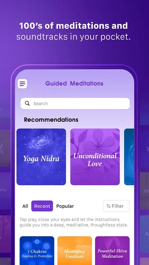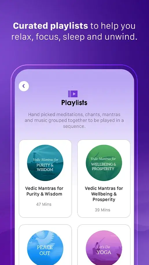 - Full access to Sacred Sounds (mantras and chants) collection.