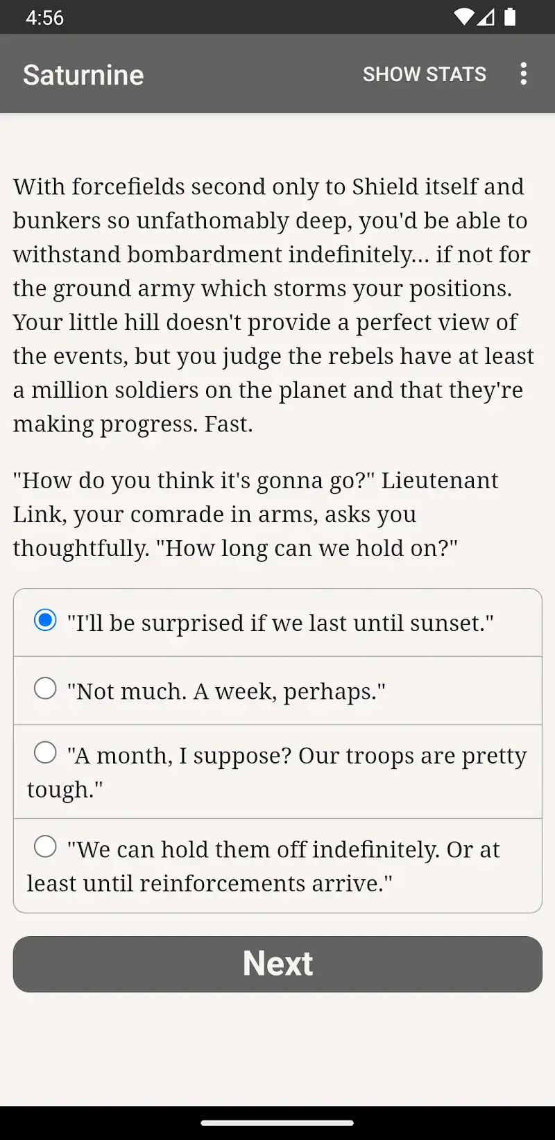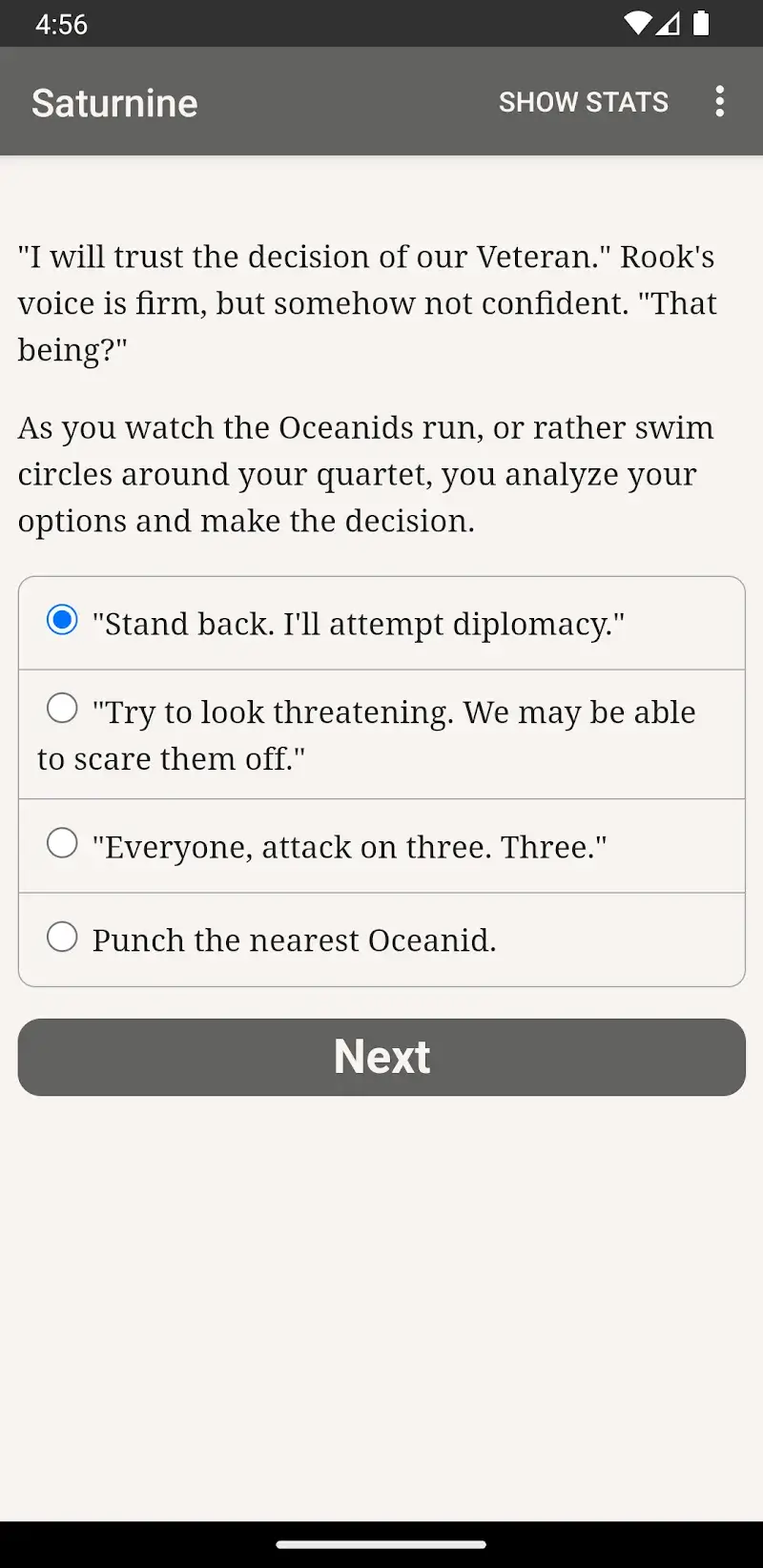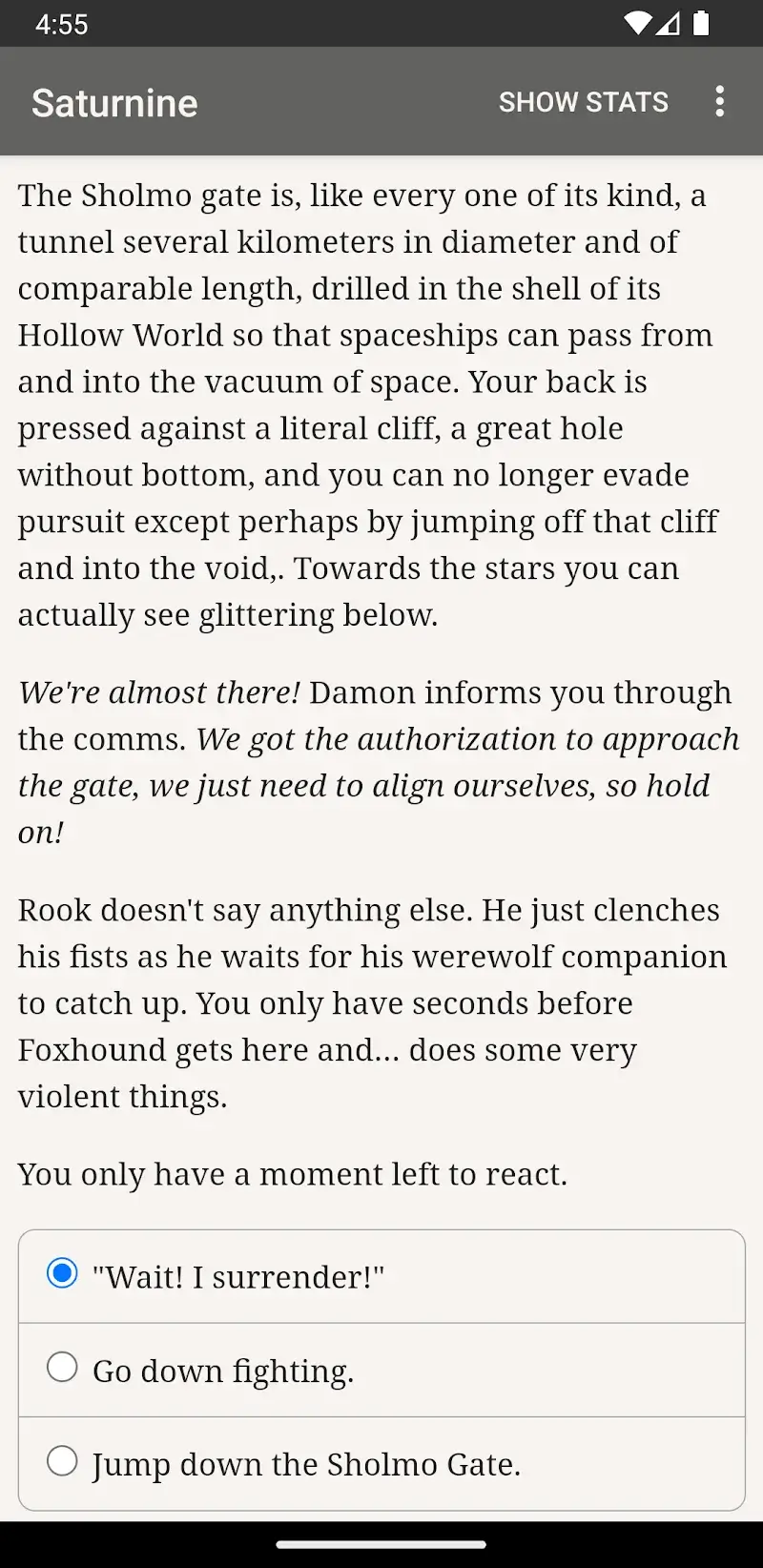 Have you ever searched for a game designed in the style of reading novels and making decisions that you can easily experience on your device? Then Saturnine will be one of the great choices that you should not miss for your favorite game collection, with the attractive features it possesses. The game will bring its players a special novel about a thousand-year-old robot with battles and decisions to make.