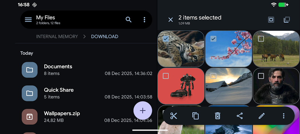 manages and optimizes files and space in your device