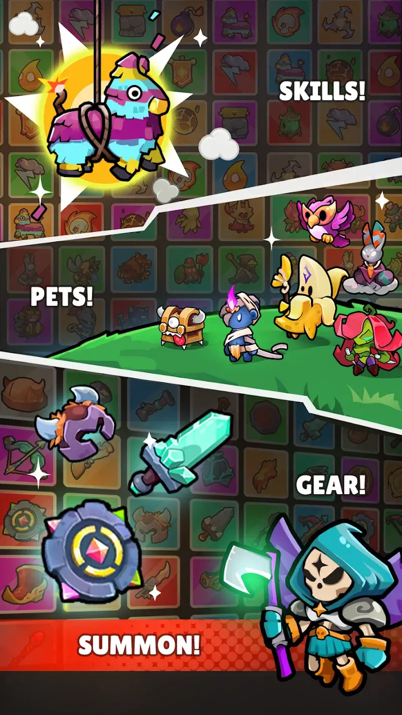 Each hero possesses an impressive power and is arranged in a hierarchy of strength. Therefore, anyone wants a character with a level higher than level A combined with powerful equipment. Other than stats, weapons, skills, and pets are often summoned using diamonds. This is a resource that only appears every time you complete a mission. Therefore, their rarity is often higher than gold and takes a long time to collect. Using rare things often requires being careful and prioritizing important things first. Many development branches will be created to meet the creativity and breakthroughs of players.