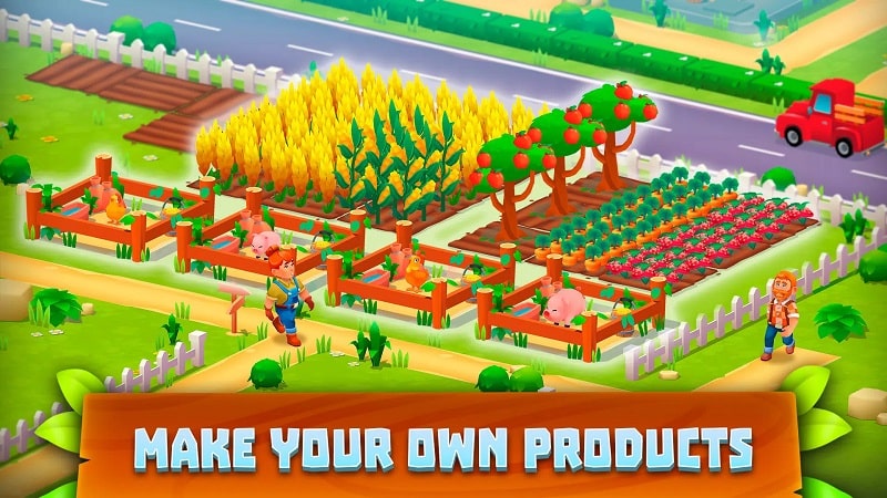 Supermarket Village Mod is a business simulation game focused on vertical integration. Players manage a farm to produce clean food, operate factories to create goods, and run a supermarket chain to sell products. The core loop involves planting crops, raising livestock, manufacturing items, and expanding retail operations to serve a growing town. It targets players who enjoy incremental progression and management mechanics without intense time pressure.