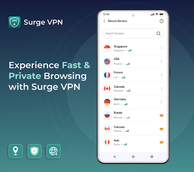The modded features are active immediately upon launching Surge VPN Mod. No manual activation or menu is required. The app presents itself as the premium version from the first launch.