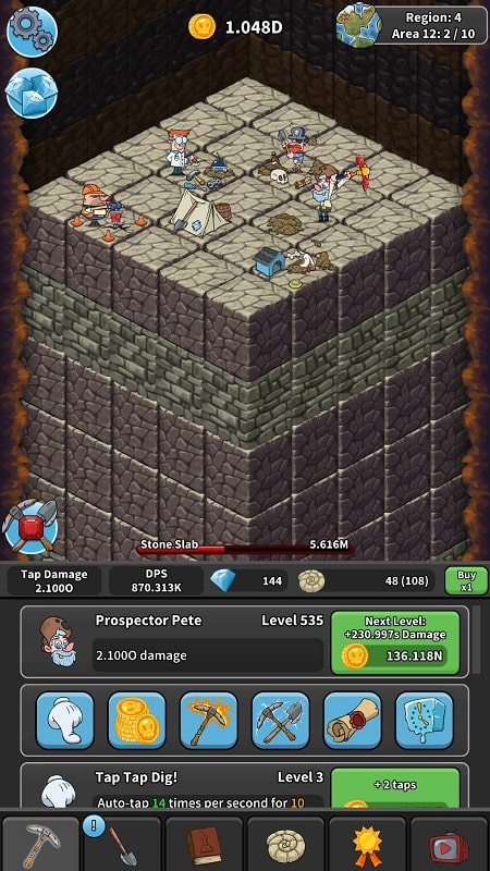 Tap Tap Dig Mod mod APK requires Android 7.0 or higher. The installation file is approximately 67 MB, with additional data downloads likely upon first launch. Root access is not required. The mod functions by manipulating local game data and does not require an internet connection for its core features to work.