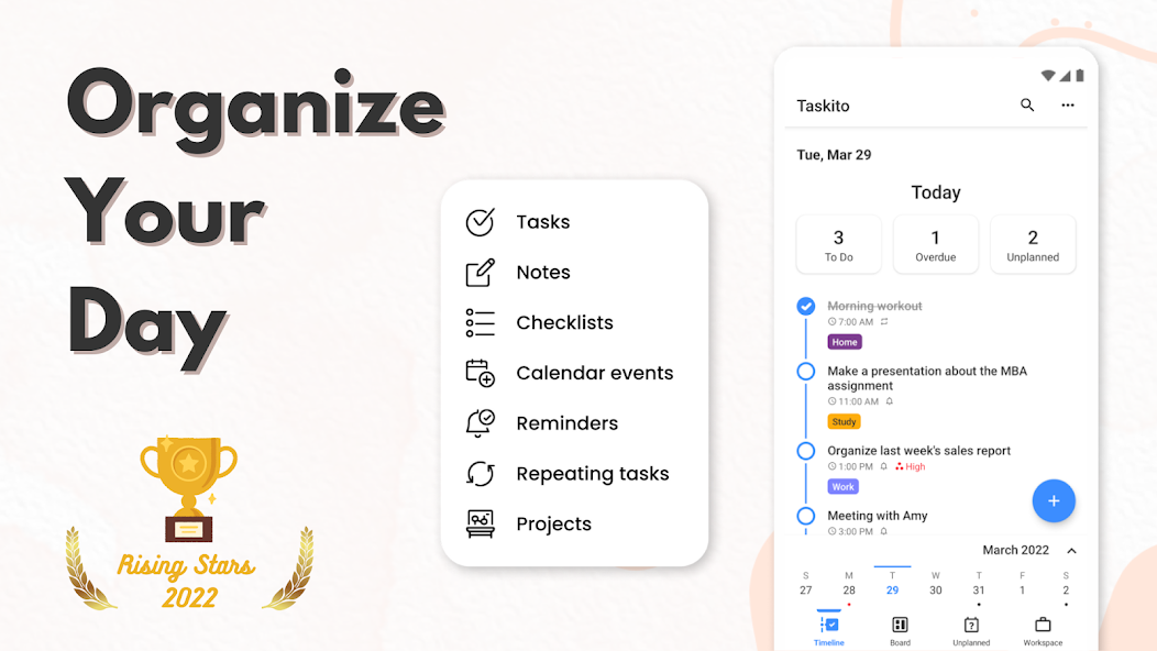 To have an effective work or study day, you need to make sure that all activities are done properly. Therefore, you should use Taskito to create a to-do list for each day to complete it on schedule. Everything is shown by the publisher Taskito in a simplified way. Any user can use and feel the effects that it brings.