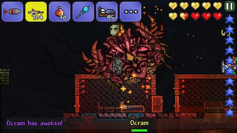 In this adventure, the first thing you’ll need to do is search for resources. It is the raw material for you to craft weapons to fight against enemies that make it difficult for you along the way. Terraria MOD APK has relatively many weapons you can easily craft. However, to remember all the recipes for each weapon is impossible. Once you have the right weapon you can continue your adventure without fear of anyone getting in your way. In addition to the enemies often found in the journey, you must also fight the Boss. That is the real test of skill for you, take every move you have learned and use it.