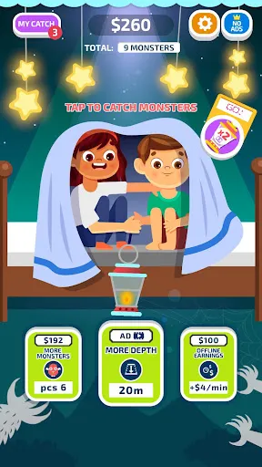 Basically, the monster hunting mechanism in the game is really simple, without violent battle scenes. Instead, the player simply helps them drop the lantern under the bed with a rope to catch the monster. Believe me, there will be a lot of monsters lurking under your bed in this game. Don’t miss this great opportunity to return to your childhood one more time.