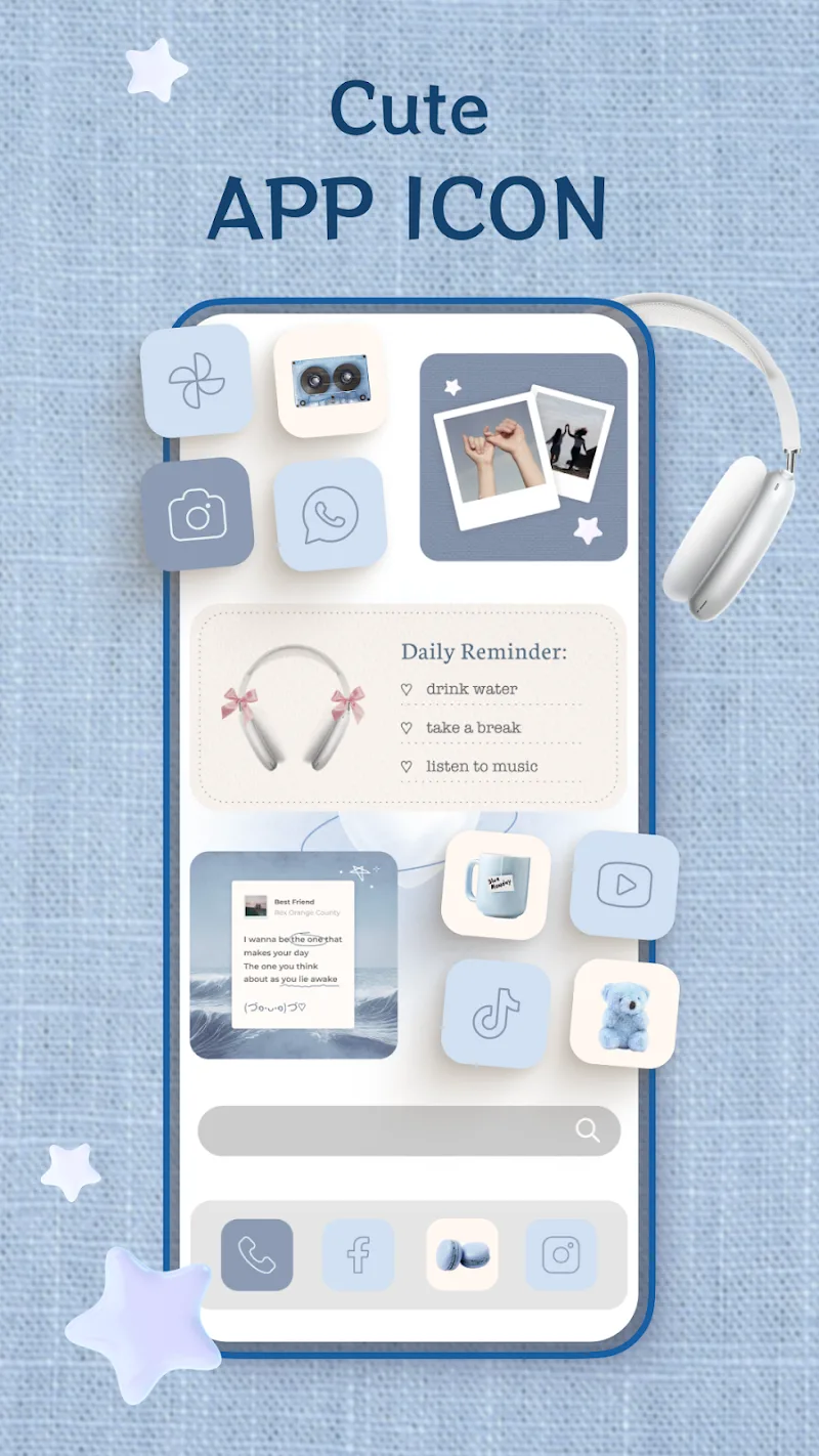 Themes, Widgets & Icon changer Mod es una aplicación de personalización para Android. Permite a los usuarios crear accesos directos en la pantalla de inicio con íconos personalizados para cualquier aplicación instalada. Incluye una biblioteca de paquetes de íconos y widgets. Está dirigida a usuarios que buscan modificar la estética de su sistema sin necesidad de root.