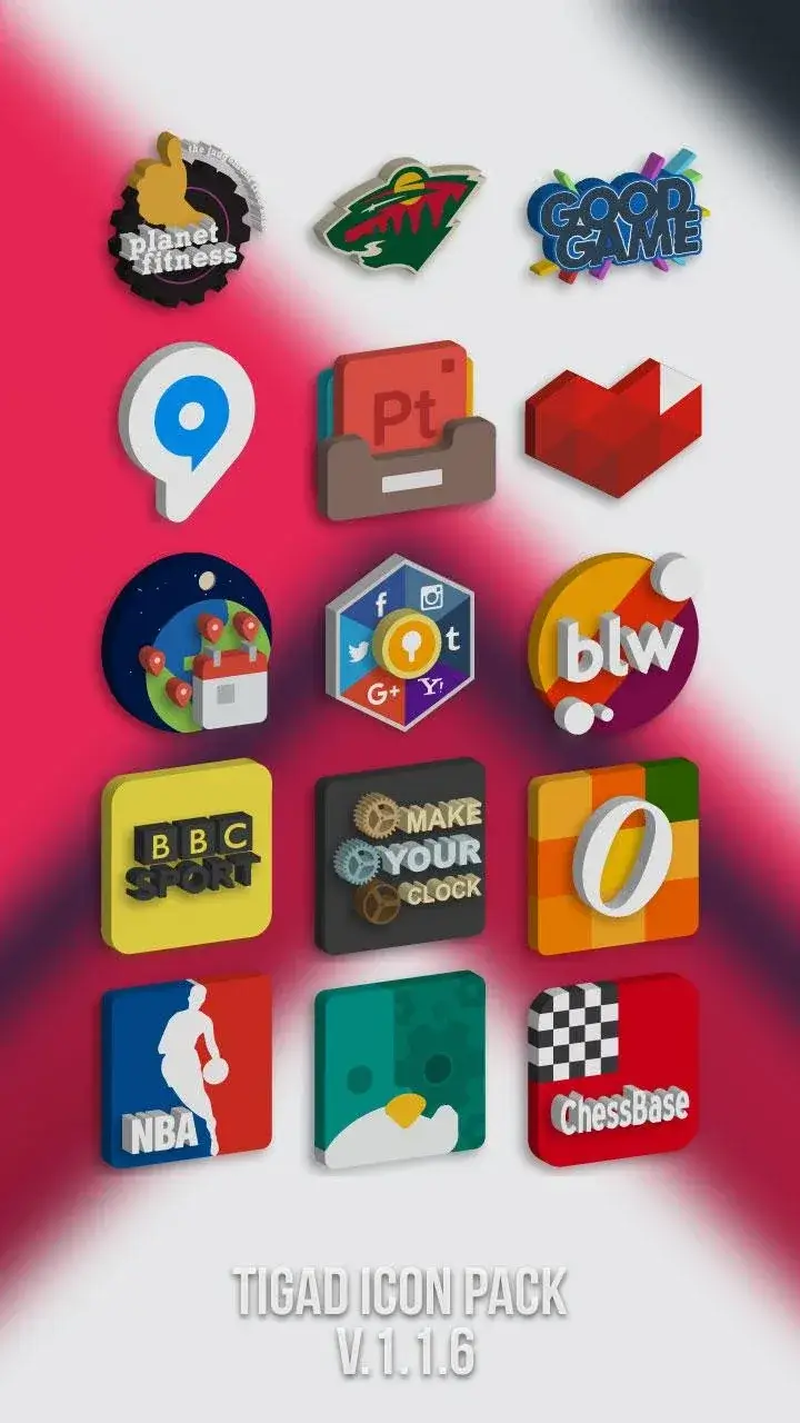 The user’s device interface will be easily customized by Tigad Pro Icon Pack. This application provides a unique 3D icon pack for users to replace the new interface. The icon templates are meticulously crafted and reach the threshold of stunning quality.