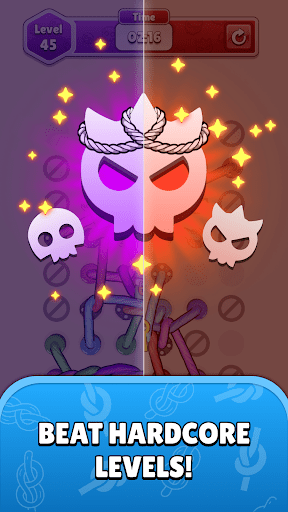 Twisted Tangle Mod is a logic-based puzzle game focused on spatial reasoning and color matching. Players manipulate and knot ropes of the same color onto designated pegs. The core challenge involves planning routes to avoid overlaps and solve increasingly complex layouts. It targets a casual puzzle audience familiar with tile-matching and pathfinding mechanics.
