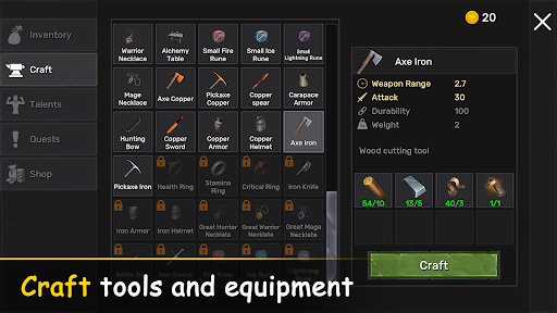 Earn crafting points and use your crafting skills to craft new tools or weapons. As you progress, you can develop your character’s skills and abilities, unlock new abilities, and improve your chances of survival. Of course, the development of the character will take a lot of time and you need to keep patience.