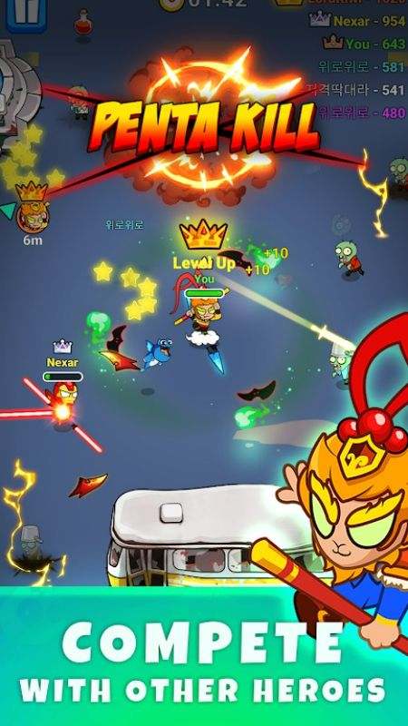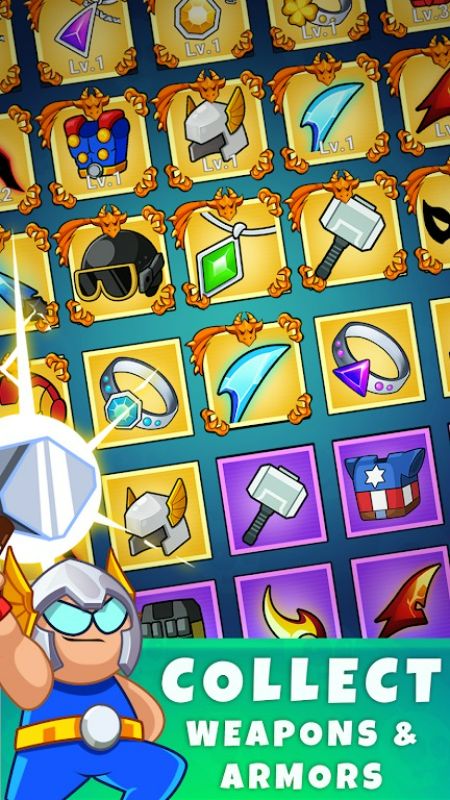 Players control their superhero to move around the city. And destroy all the undead that appear in front of you. With the enthusiastic support of weapons, magic, and pets. The player’s weapon will run around, forming a circle around your hero. The sharp tip of the weapon with the ability to kill turns outward with the effect of attacking zombies when they come close. The novelty in the operation of these weapons has made it easy for players to attack many undead. It also helps your hero avoid being attacked. Or it can also reduce the opponent’s attack.