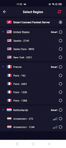 No matter what country you are living and working in around the world, you can use this application effectively. Accordingly, you just need to go to the Select Region section on the main interface to find servers in the countries closest to your region. VPN Inf offers an extensive global VPN network, covering the US, Europe, Australia, Africa and Asia, with plans to expand to more regions soon.