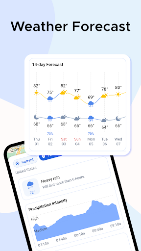 Weather Weather RainViewer’s interface is beautifully designed with specific information and images appearing on the screen. Intuitive icons will help you easily grasp the weather situation in a short period of time. At the same time, relevant weather information such as time, temperature, and rainfall of the day is also fully presented through various information or charts. In general, all weather-related information is provided by this application very clearly so that anyone can use it for the first time.