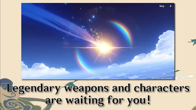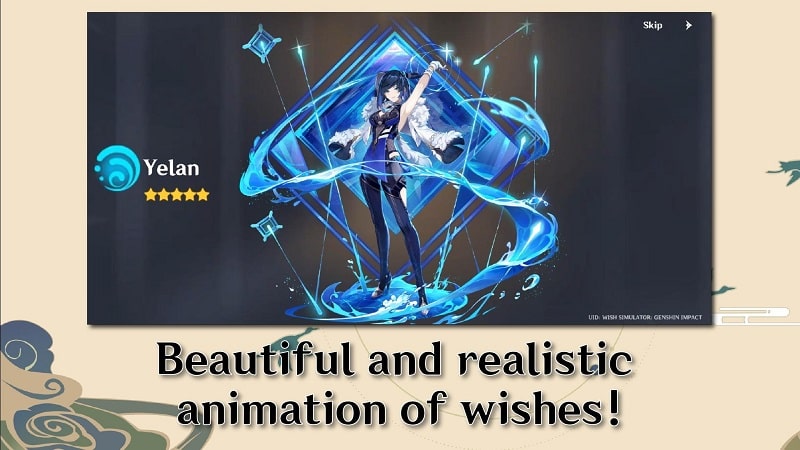 Wish Simulator: Genshin Impact MOD APK will not let you wait for your favorite character like the old version. It will constantly update and launch a variety of characters for you to pray all the time. Countless characters from 4 to 5 stars are perfect for satisfying game players’ needs. When you want to summon continuously, you must quickly press the Skip button to continue because countless characters will appear in front of the screen with unique costumes. If you want to own that character, you can stop and take it back to your collection. It’s both time-saving and straightforward. Hope you will get a good set of characters in your collection.