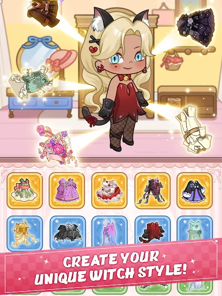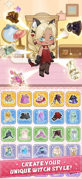 Witchy Wardrobe Idle Shop Mod requires Android 8.0 or higher. The APK file size is approximately 270 MB, with additional asset downloads expected on first launch. Root access is not required for installation or mod functionality.