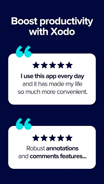 Skip the headache of managing many apps and use one amazing pdf editor and reader. Experience seamless workflow and unmatched security in one location. Prepare to handle your task easily and precisely. Welcome to xodo, the ultimate user-friendly app. Xodo delivers over 30 functions for android phones and tablets with its elegant design and user-friendly ui. Experience xodo's strength and adaptability now! Securely save and sync your treasured data across many platforms for optimal ease. Xodo drive, dropbox, google drive, and onedrive let you easily access, edit, convert, sign, redact, compress, and combine files from anywhere. Enjoy file management anytime, anywhere, and discover endless possibilities.