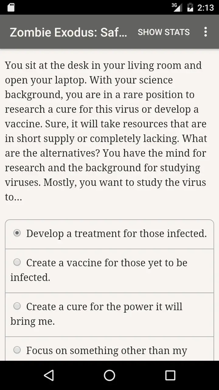 A fresh experience that allows players to read and imagine the virtual space around them through the stories provided by Zombie Exodus: Safe Haven. You will start by choosing a role in the story to start solving unique challenges. The game is built from a thrilling and dramatic story containing thousands of chapters.
